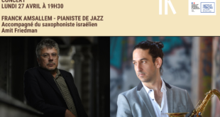 Une première à l’institut CONCERT LUNDI 27 AVRIL À 19H30 Originaire d’Oran, Franck Amsallem grandit à Nice où il prend des cours de piano mais c’est au saxophone, instrument qu’il a étudié au conservatoire de Nice, qu’il se produit pour la première fois sur scène. Pianiste, compositeur …