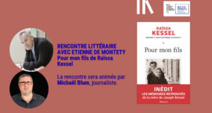 RENCONTRE LITTÉRAIRE AVEC ETIENNE DE MONTETY Pour mon fils de Raïssa Kessel JEUDI 16 AVRIL À 19h Publication inédite Les mémoires retrouvées de la mère de Joseph Kessel publiées chez l’éditrice Valérie Dumeige (Arthaud, 2025). À la mort de Joseph Kessel, restait un paquet de feuilles tapées …