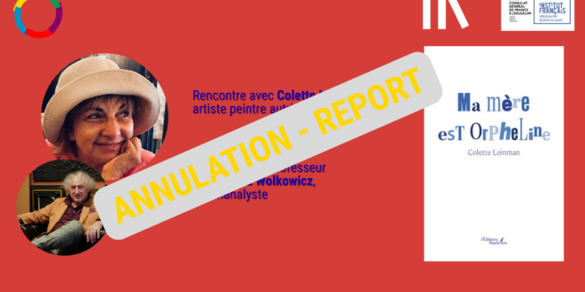 Dans le cadre du mois de la Francophonie, l’institut français de Jérusalem Romain Gary a le plaisir d’accueillir Colette Leinman, artiste peintre, écrivaine, poète autour de son livre Ma mère est orpheline, paru aux éditions Baudelaire en octobre 2025.